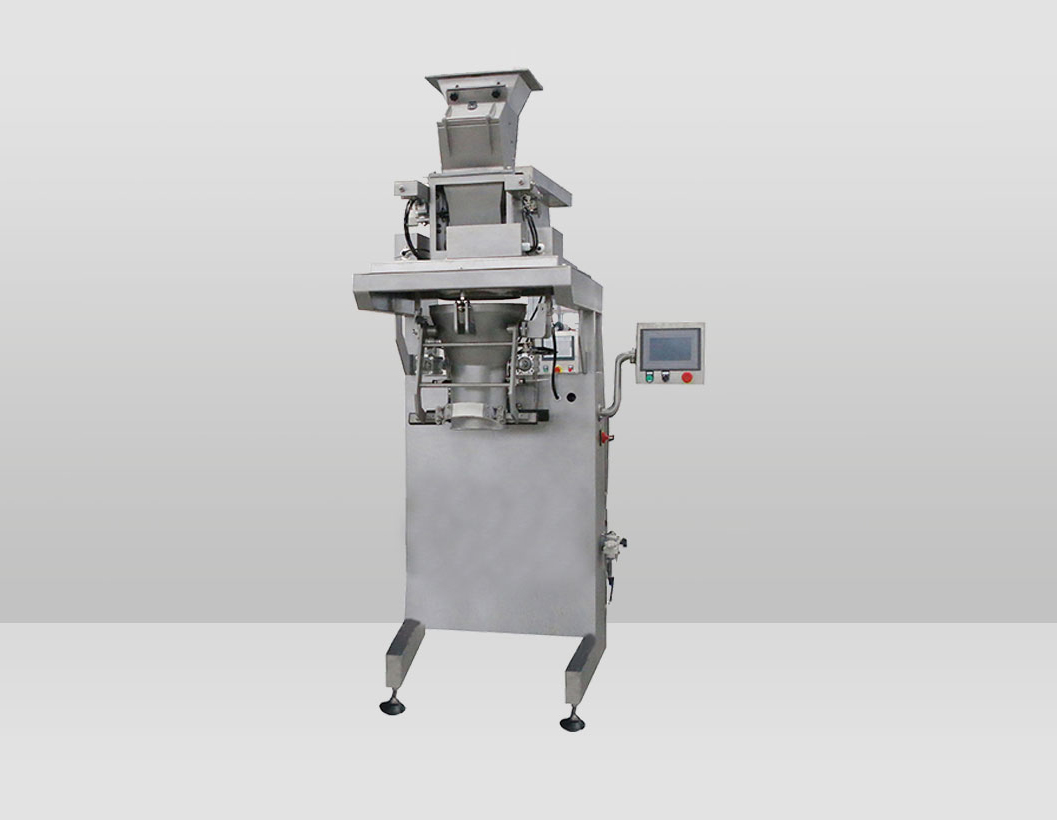 該機(jī)主要工作流程為設(shè)定好包裝重量后,人工將包裝袋套到氣動(dòng)夾袋機(jī)構(gòu),啟動(dòng)灌裝開始按鈕,夾袋機(jī)構(gòu)自動(dòng)將袋子夾住,然后往包裝袋中進(jìn)行放料,放料過程分為粗加料和精加料兩個(gè)階段,且加料過程中可選配除塵及抽真空工藝。達(dá)到標(biāo)定重量后,夾袋機(jī)構(gòu)自動(dòng)脫開,人工將包裝袋搬至皮帶輸送機(jī)上進(jìn)行抽氣、封口等工序。